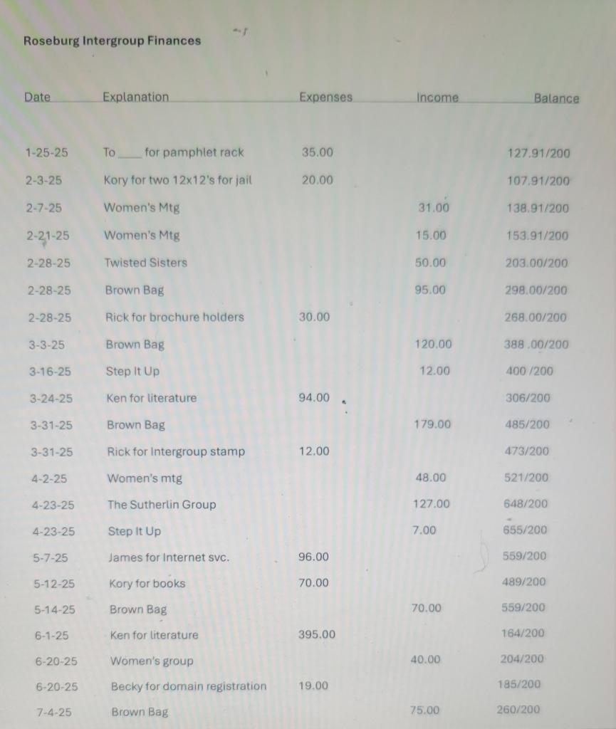 ROSEBURG INTERGROUP CAN USE YOUR HELP!