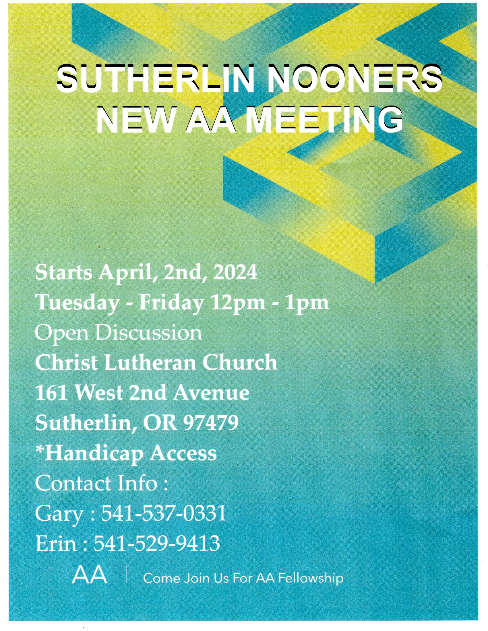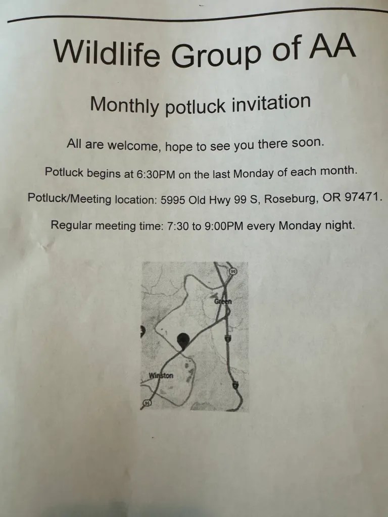 NEW MEETING! MYRTLE CREEK – Monday evenings @ 7PM